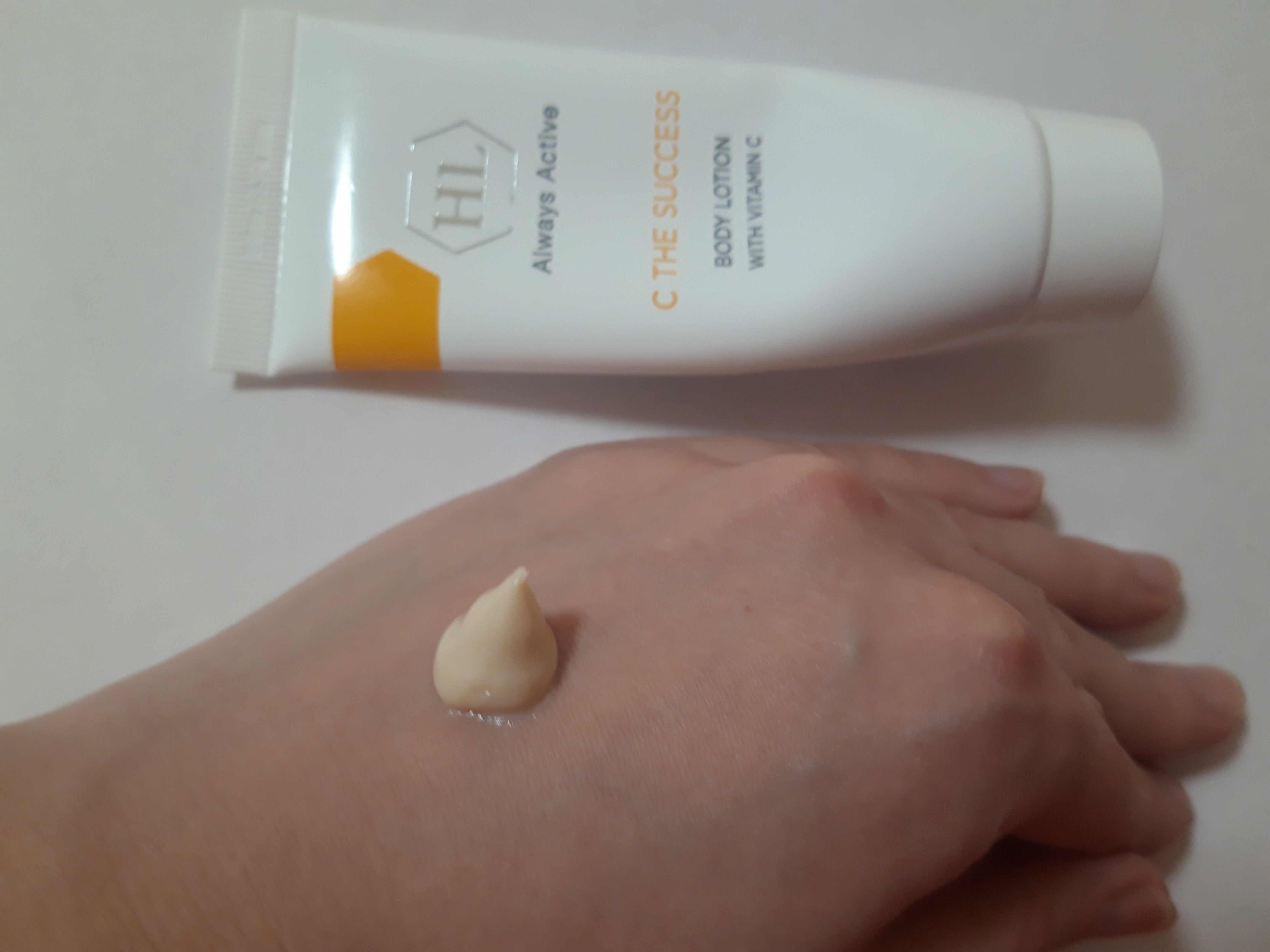 Использовала на всё тело после принятия ванны. Плюсы:1.очень быстро впитывается, после нанесения можно сразу одеваться, никаких следов на одежде не оставляет.2.очень хорошо увлажняет и смягчает кожу Минусы:1.Запах.Пользуюсь другими кремами для лица HL с витамином C, у них запах цитрусовый. У данного лосьона запах тоналки. Если кто помнит, был тональный крем Российского производства Балет, так вот запах оочень его напоминает. Запах тяжелый, не освежающий.2. Слишком неэкономный расход. Лосьон имеет очень плотную текстуру. Фото прилагаю. За счет плотной основы лосьон плохо распределяется по телу,при использовании 3 раза в неделю, хватает тюбика всего лишь на месяц. Данный лосьон позиционируются, в первую очередь, как лосьон для тела, но текстура неподходящая для этого, для лица как раз. Я бы не назвала данный продукт лосьоном, скорее крем для тела. Резюмируя, могу сказать, что этот лосьон хорош только для локального использования и смягчения на участках тела:локти, колени,в местах ожогов.