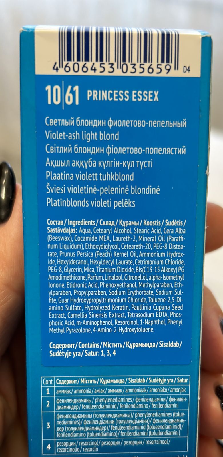 PRINCESS ESSEX 10/61 — крем-краска для модного стойкого окрашивания. Позволяет с лёгкостью создавать красивые оттенки, бережно заботится о волосах во время процедуры, обеспечивает идеальное покрытие седины и гарантирует 100% попадание в тон. Насыщая волосы цветом, делает их более эластичными и блестящими за счёт системы ухода VIVANT SYSTEM.