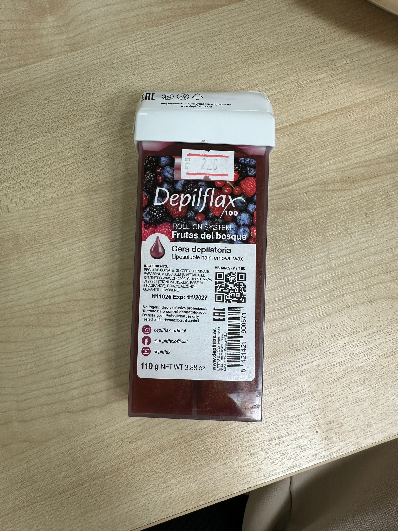 Воск имеет потрясающий фруктово-ягодный аромат. Рекомендован для эпиляции тонких волос.