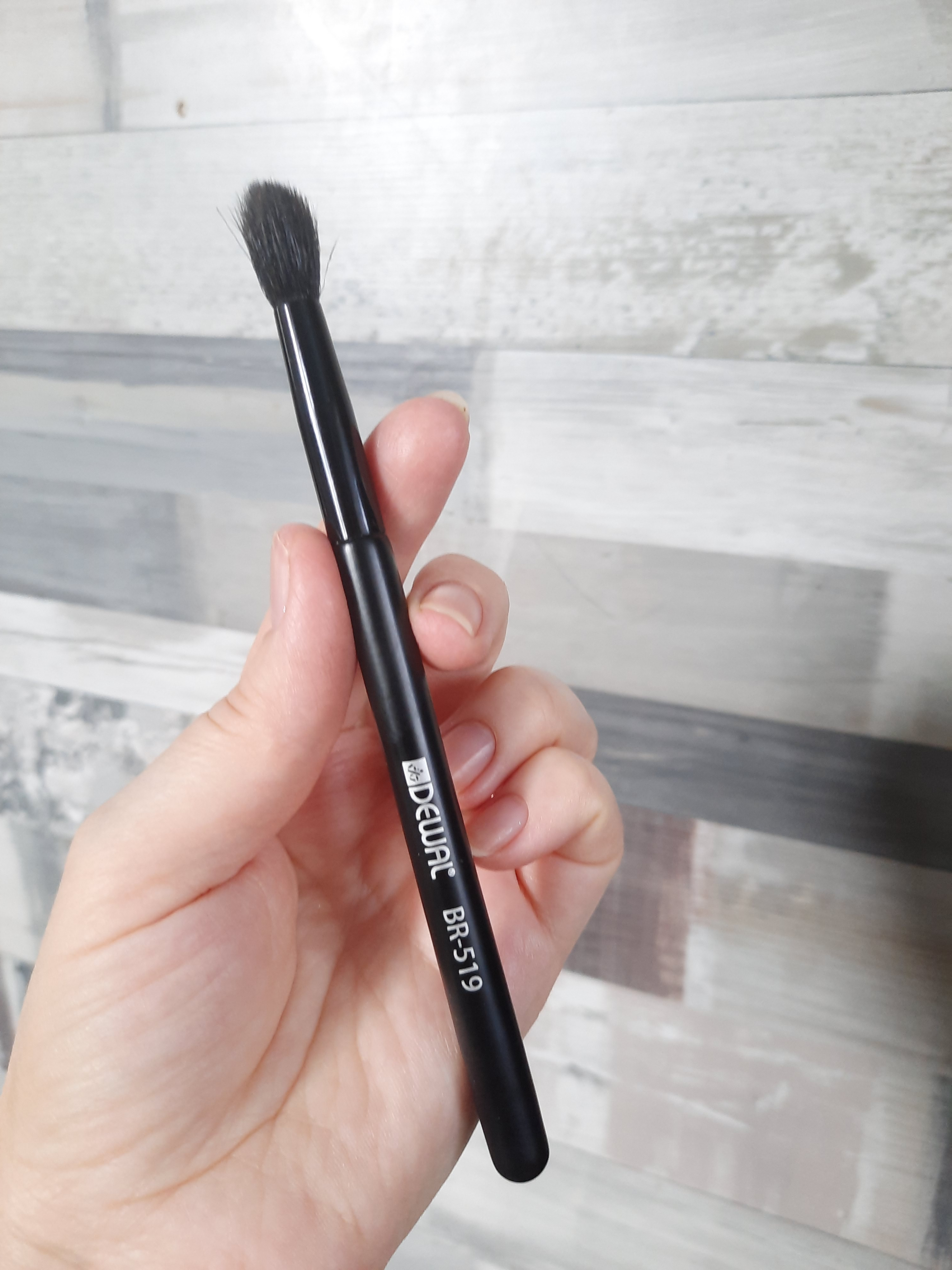 Кисть выполнена в черном матовом цвете, на ручку нанесен серебряный логотип Dewal. Ручка кисти изготовлена из дерева и металла, ворс - черная коза. Кисти с натуральным ворсом - более мягкие, равномерно распределяют косметику по поверхности кожи, просты в уходе и долговечны в использовании. Кисть используется для растушевки теней. Длина ворса - 2 см.