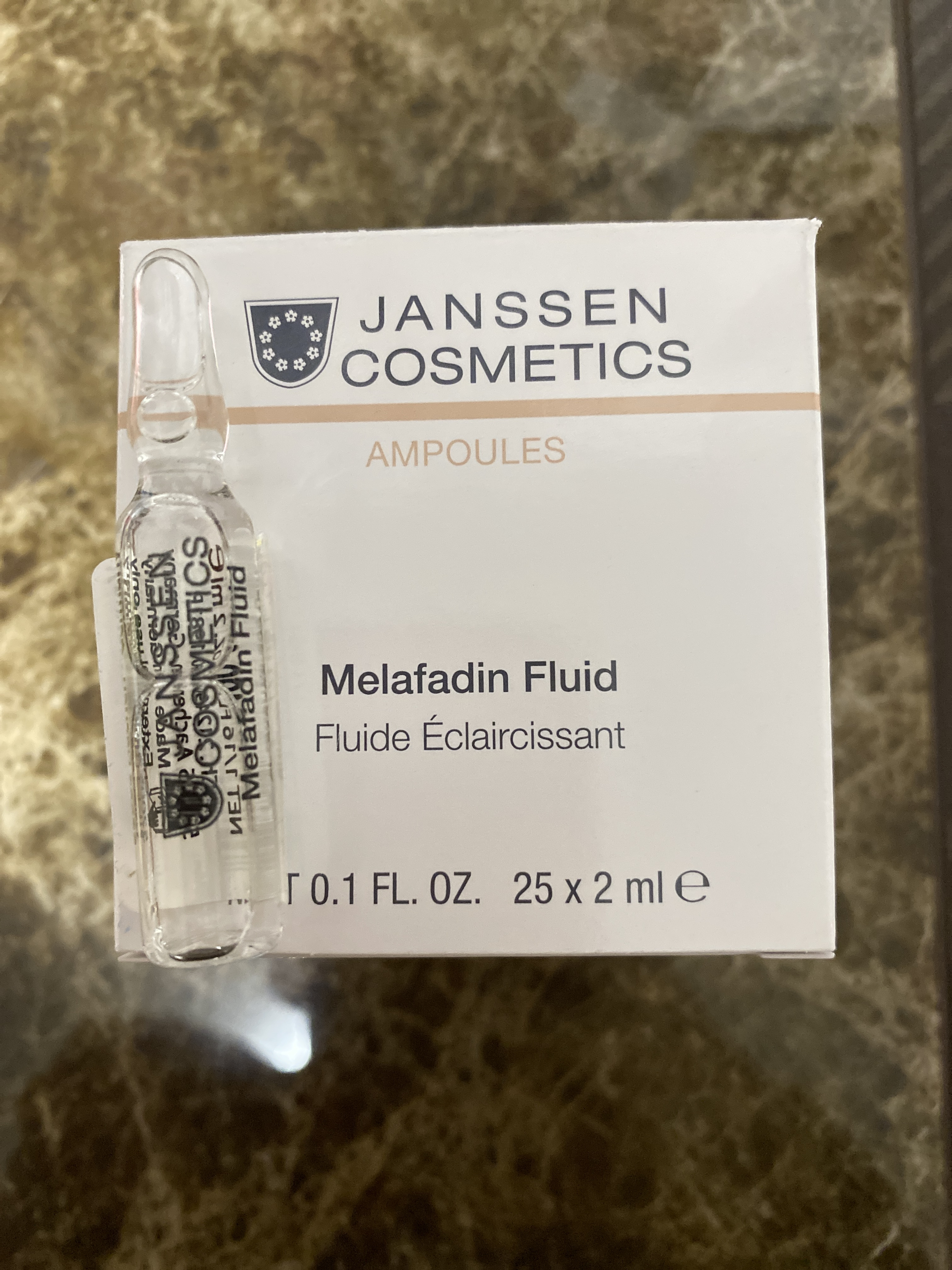 Melafadin Fluid – это специальный концентрат, содержащий высокоэффективные осветляющие компоненты, которые подавляют образование меланина на его начальной стадии: они блокируют процесс созревания меланина и препятствуют его транспортировке в роговой слой кожи.