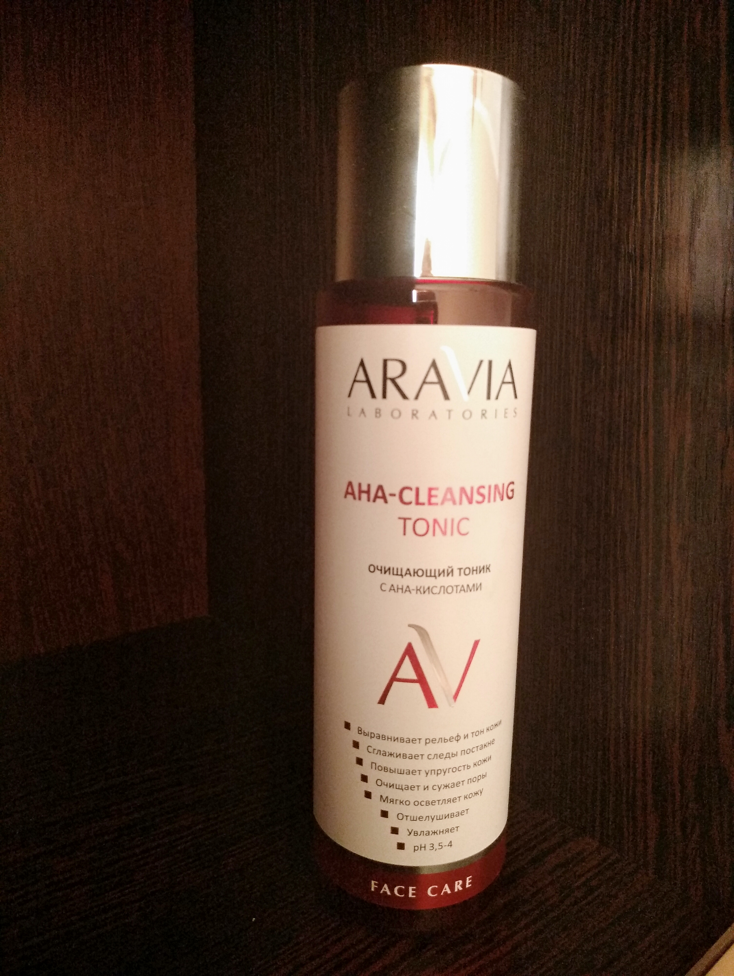 Тоник для лица с комплексом AHA кислот мягко отшелушивает и обновляет кожу. При регулярном применении выравнивает рельеф и тон кожи, улучшает цвет лица, устраняет постакне, пигментацию и рубцы, борется с возрастными изменениями, сокращает глубину морщин, повышает упругость и эластичность. Тоник увлажняет и придает коже сияние. Очищает и сужает поры, осветляет черные точки. Ускоряет процессы регенерации и обновления клеток. Обладает противовоспалительным действием. Подходит для ежедневного использования. рН3,5-4.