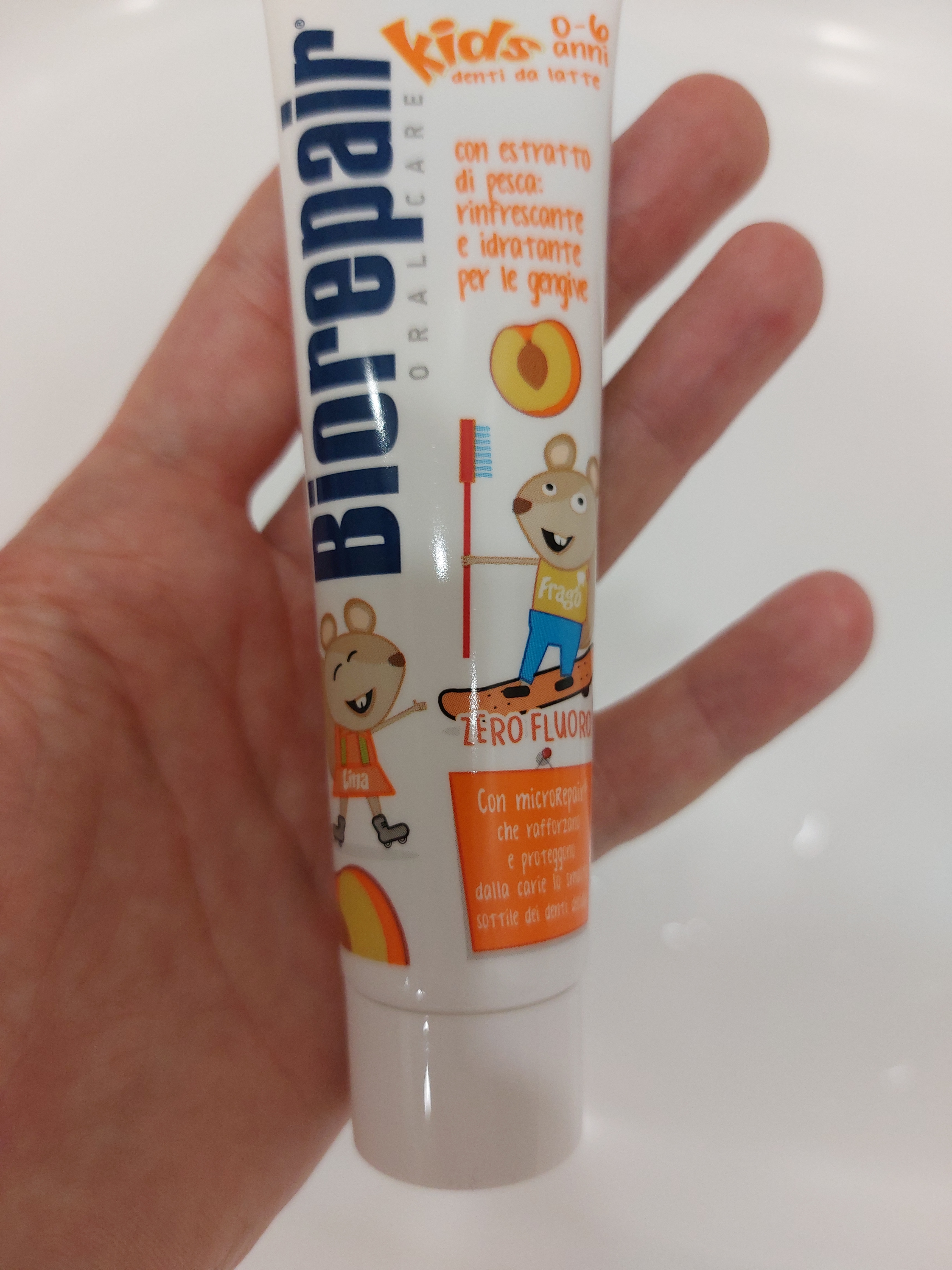 Зубная паста Biorepair® Kids обеспечит восстановление и надежную защиту эмали детских зубов от воздействия вредных кислот и сахара. Экстракт персика, освежает и питает десны, облегчая процесс прорезывания зубов.