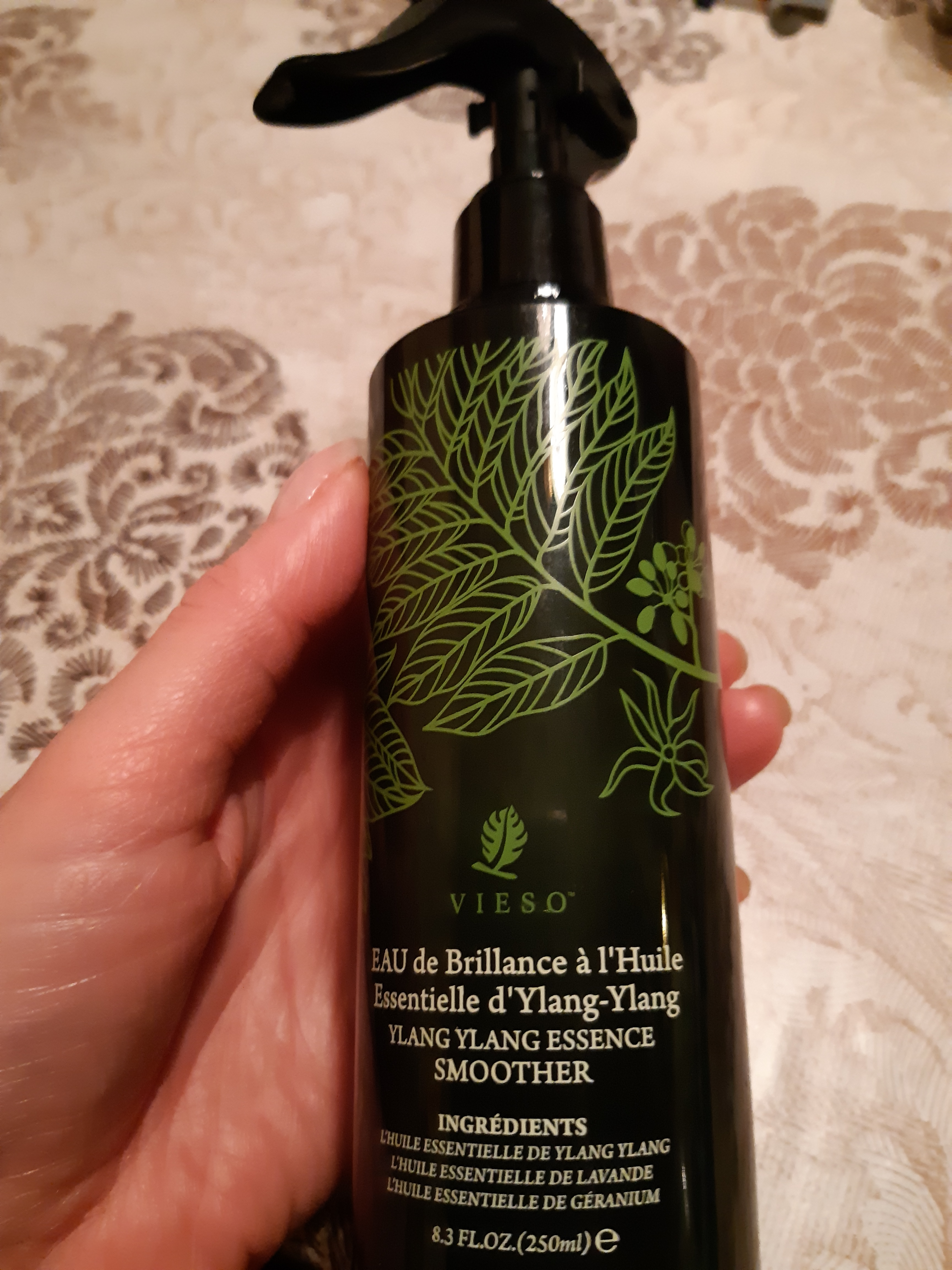 Смягчающий спрей для разглаживания волос иланг-иланг содержит природный комплекс эфирных масел иланг-иланга, лаванды и герани сохраняет цвет, восстанавливает, способствует росту и успокаивает сухие и поврежденные волосы. Наполняет волосы жизненной силой и увлажняет их. Его приятный аромат подарит вам ощущение блаженства. Средство предназначено для ежедневного использования.