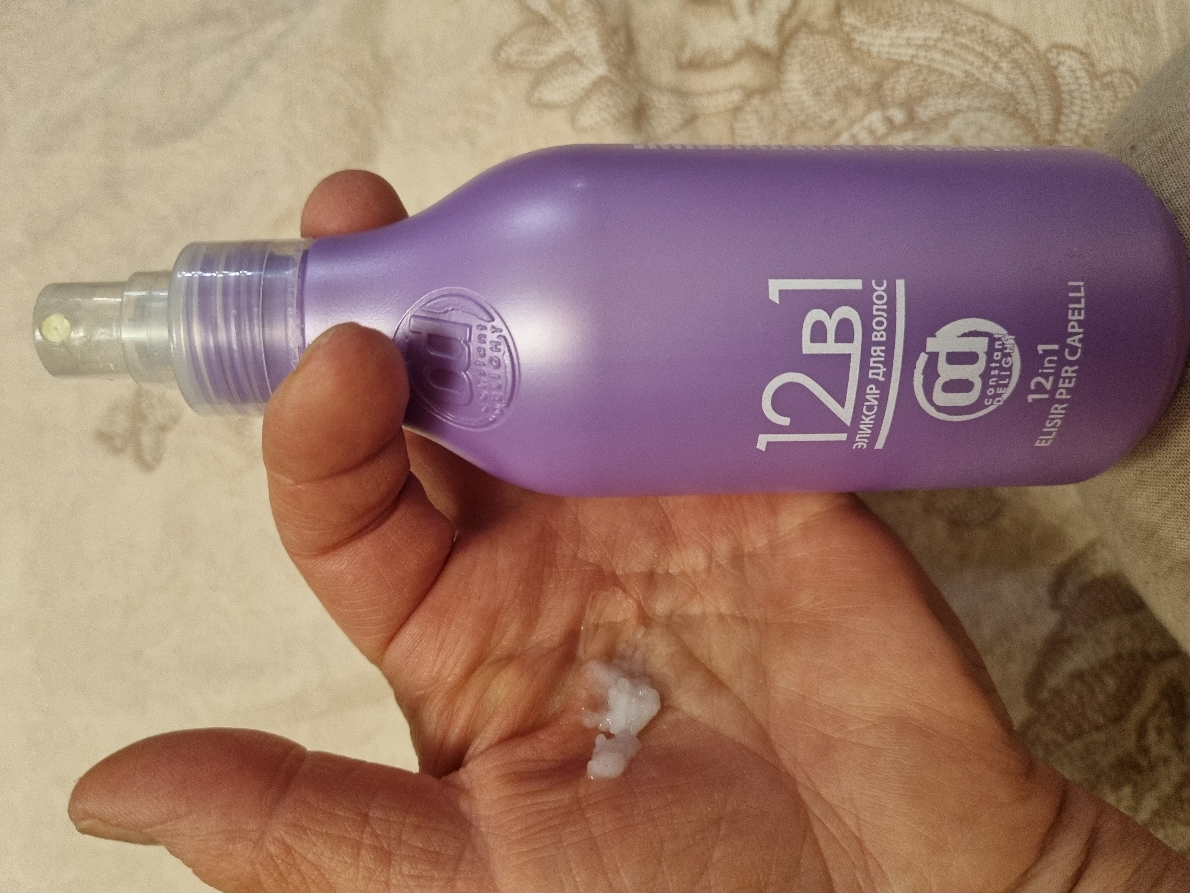 Интенсивная маска мгновенного действия, не требующая смывания. Разработана на основе натуральных ингредиентов. Средство активно воздействует на проблемные зоны. Эликсир для волос «12 в 1» одновременно оказывает 12 положительных эффектов: восстанавливает волосы по всей длине, защищает от термических воздействий, питает и увлажняет, облегчает расчесывание, содержит UV-фильтры, защищает от неблагоприятных факторов окружающей среды, облегчает укладку непослушных волос (антистатический эффект), насыщает структуру волос кератином, придает сияющий блеск, делает их менее пушистыми, помогает продлить интенсивность цвета окрашенных волос и предотвращает появление секущихся кончиков.