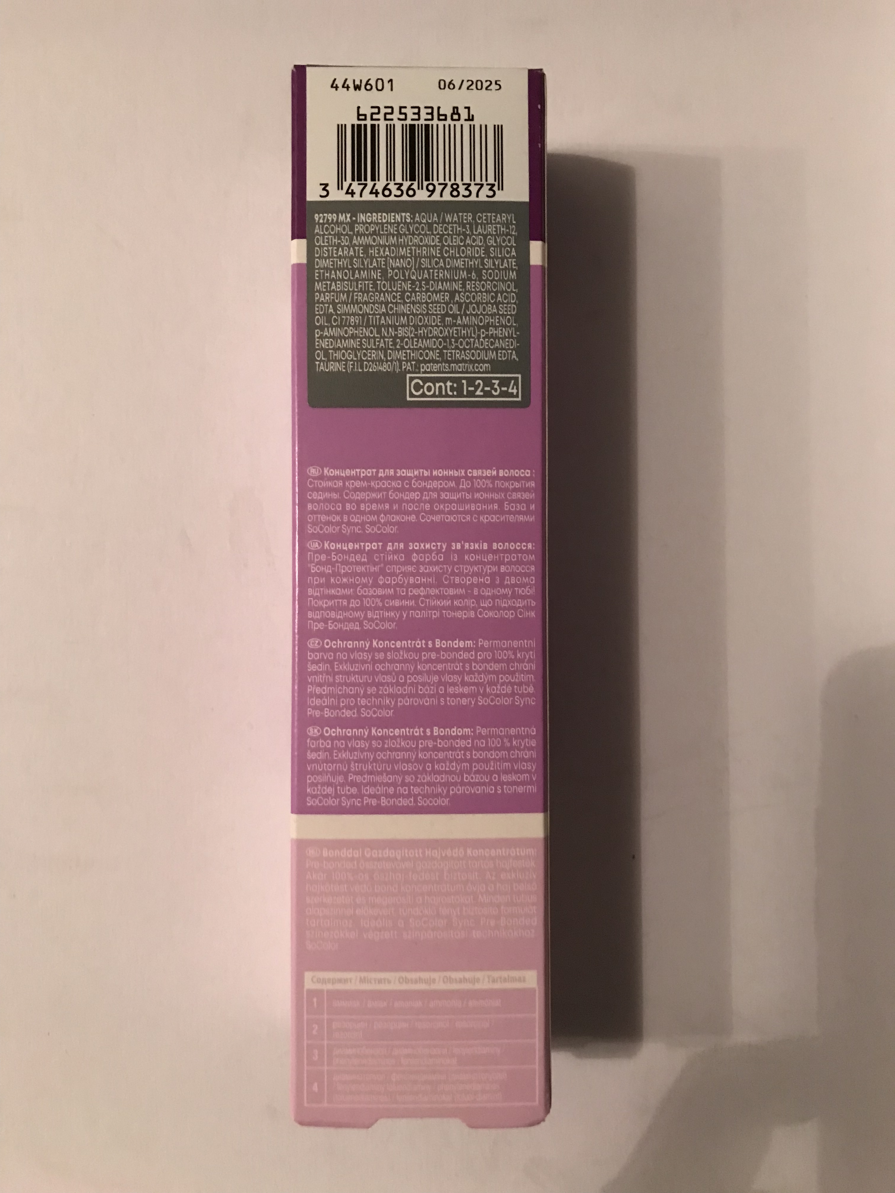 очень хорошая краска. закрашивает седину. держится на волосах хорошо, если мыть голову шампунем для окрашенных волос. цвет темно-русый, можно смешивать с другими оттенками Матрикс этой линейки для придания оттенка (красноватого - с буквой М или золотистого - с буквой G). волосы после краски мягкие, с блеском.