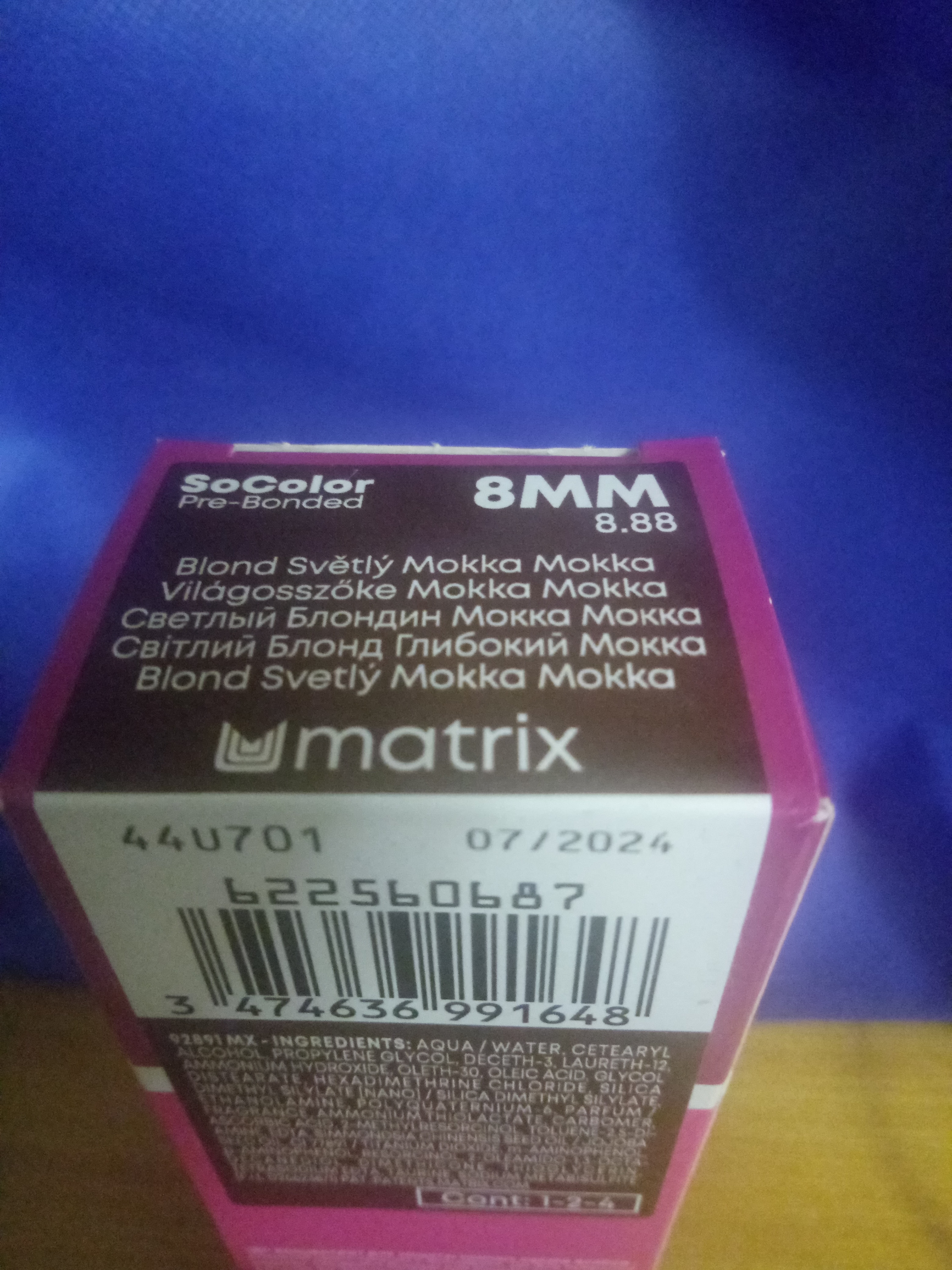 Пропорции смешивания 1:1 краситель SoColor и крем-оксидант Matrix.