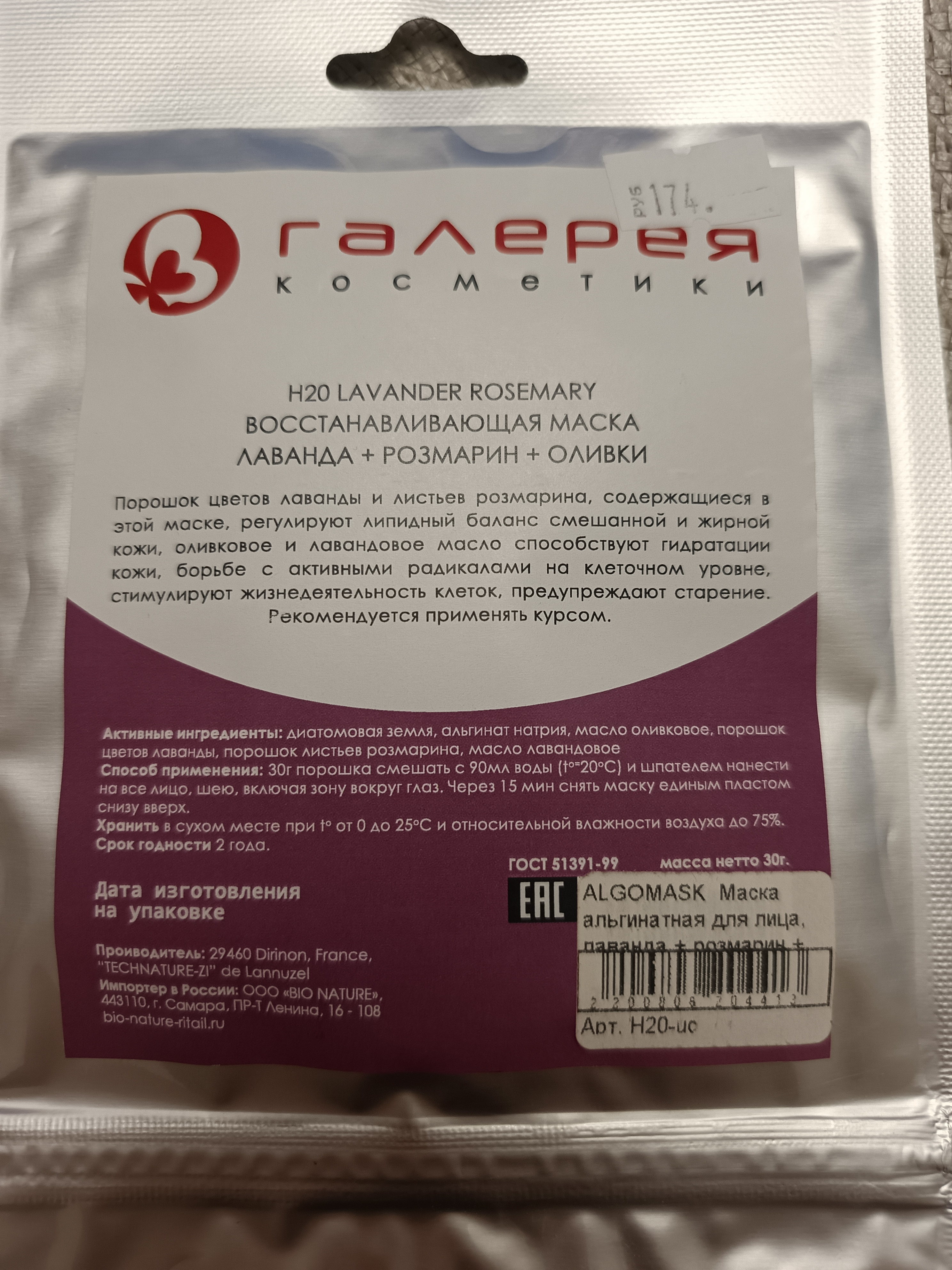 Активные ингредиенты: Диатомовая земля, альгинат водорослей, масло оливковое, порошок цветов лаванды, порошок листьев розмарина, масло лавандовое.