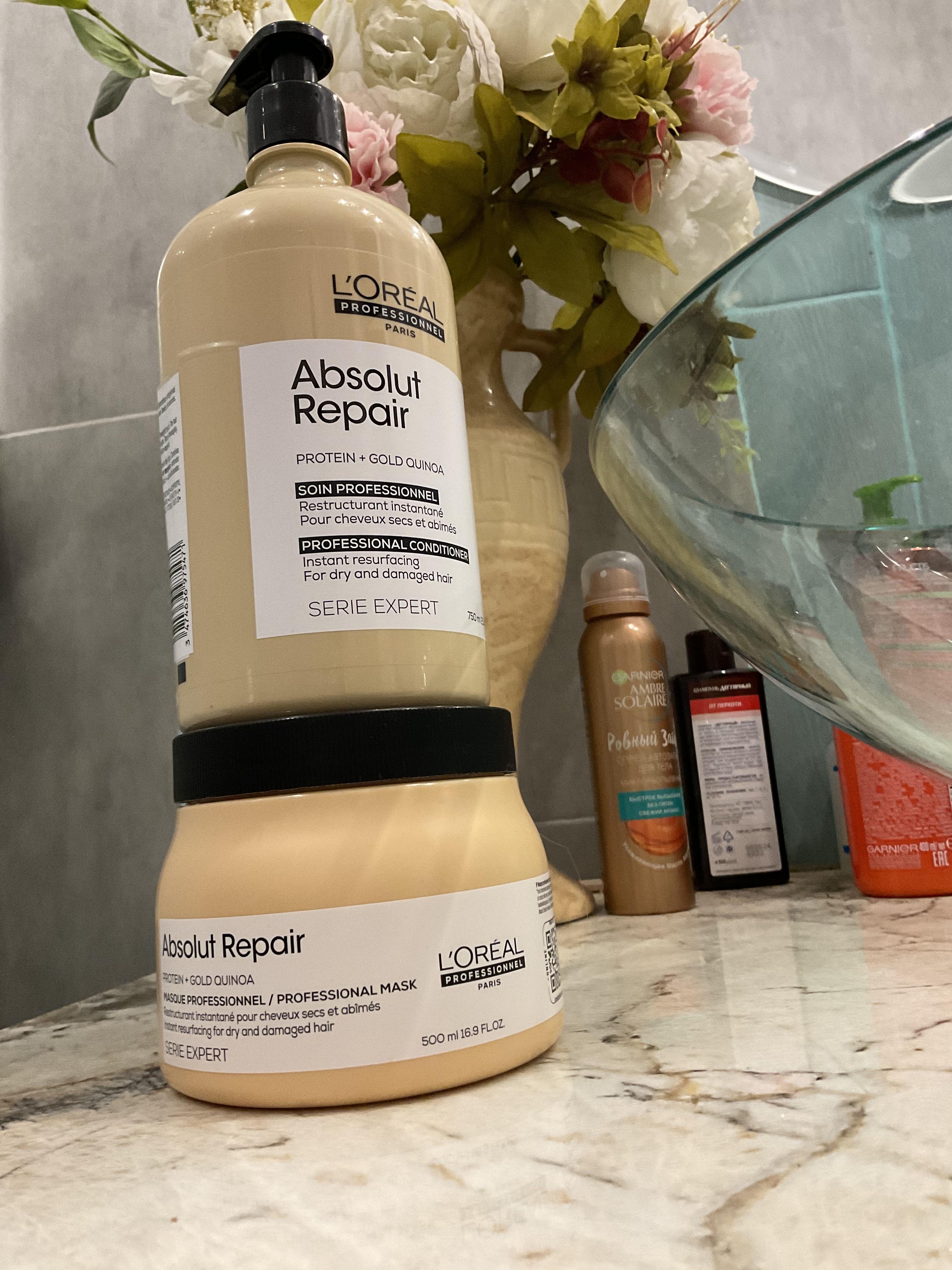 Для решения частых проблем в уходе за волосами, таких как ломкость и потеря блеска из-за повреждений от брашинга, выпрямления и окрашивания, рекомендуется использовать маску Absolut Repair с кремовой текстурой. В ее составе экстракт зерен золотого киноа и пшеничный протеин, которые помогут восстановить волосы, сделав их сильными и блестящими. Эта маска идеально подойдет для ухода как за натуральными, так и за окрашенными волосами.
