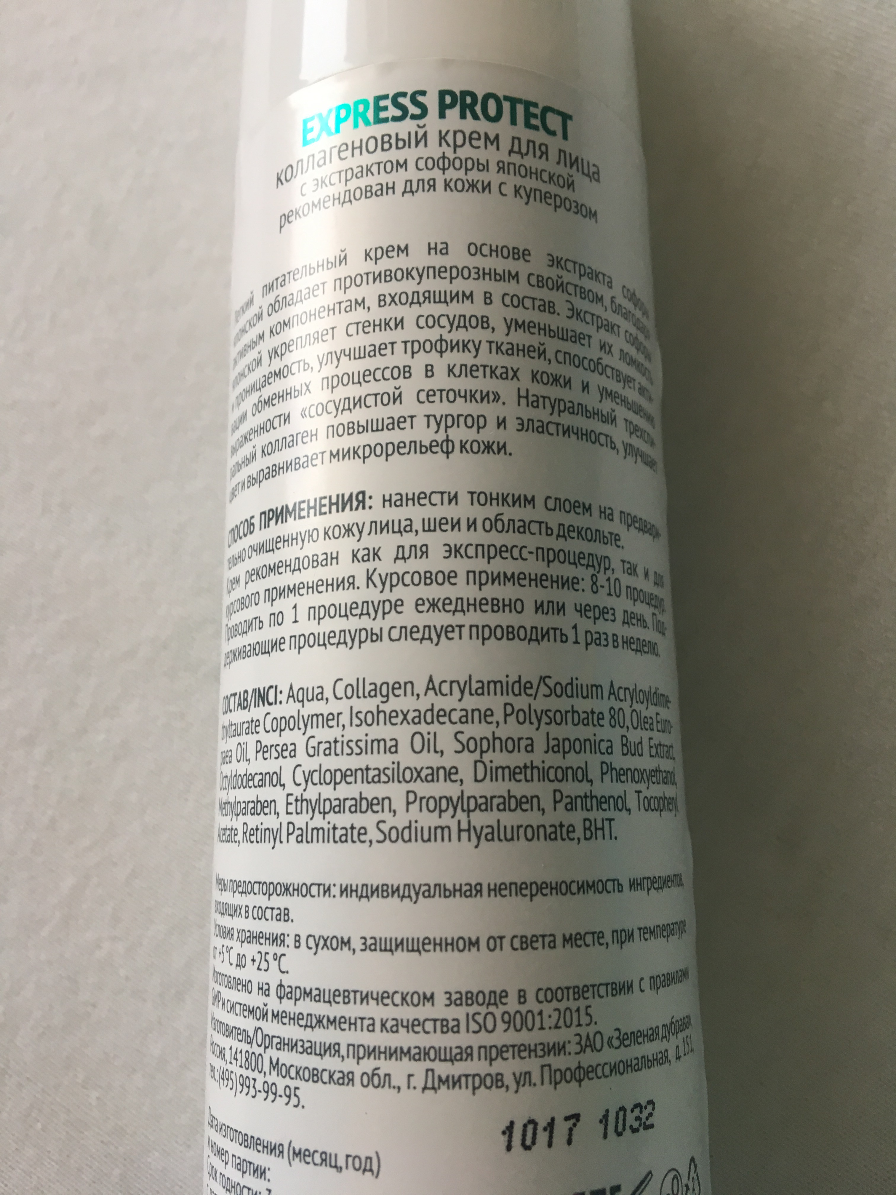 Коллагеновый крем для лица Express Protect для профилактики купероза, образования сосудистой сеточки, устранение темных кругов и отечности.