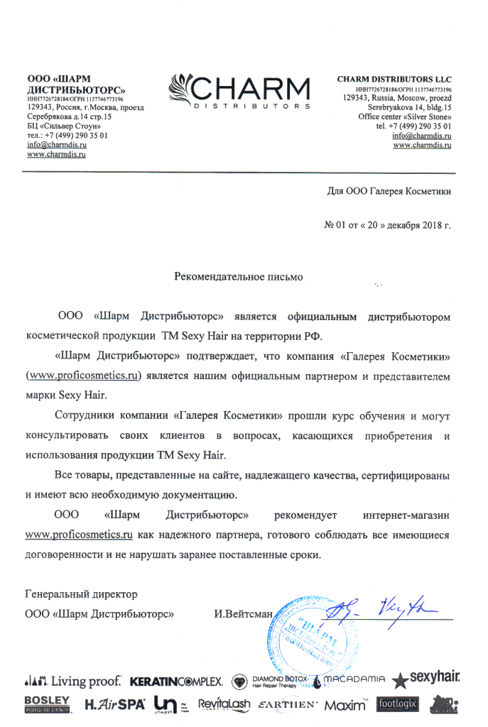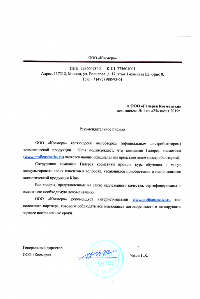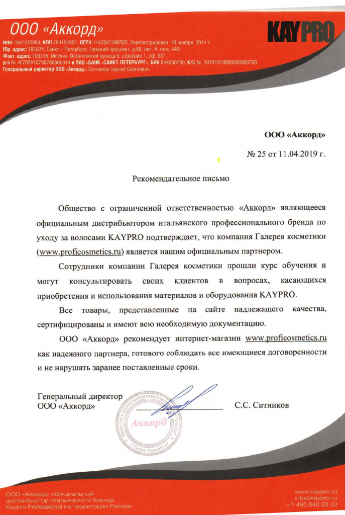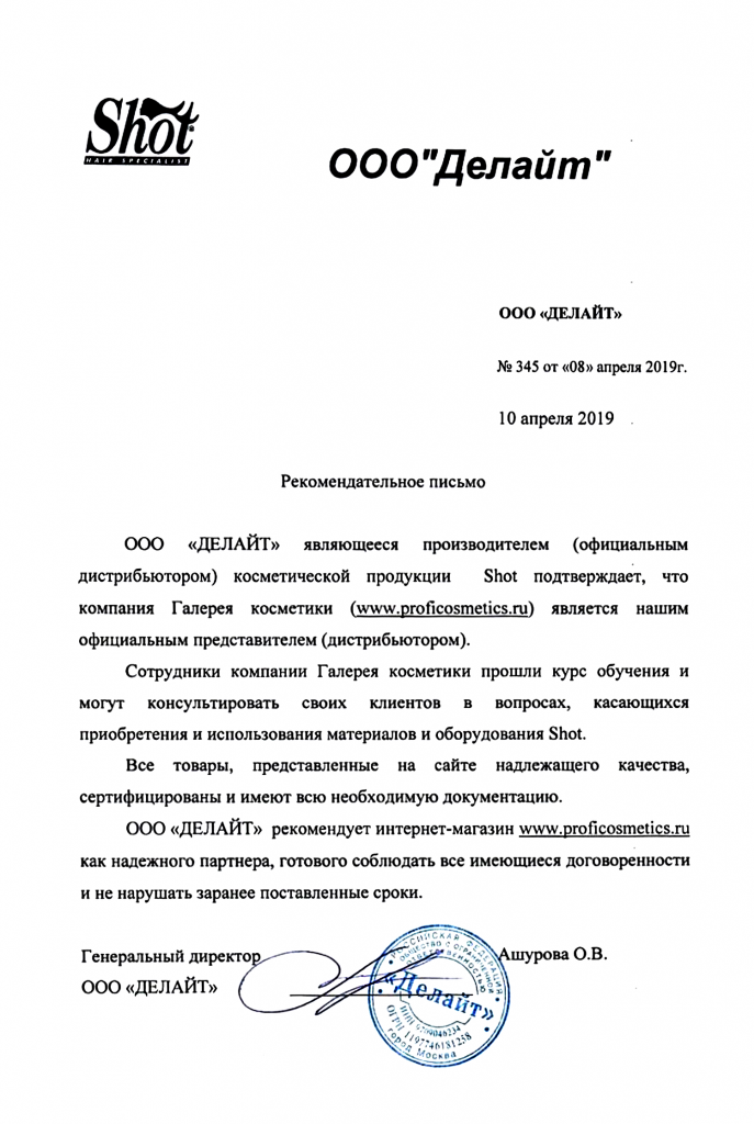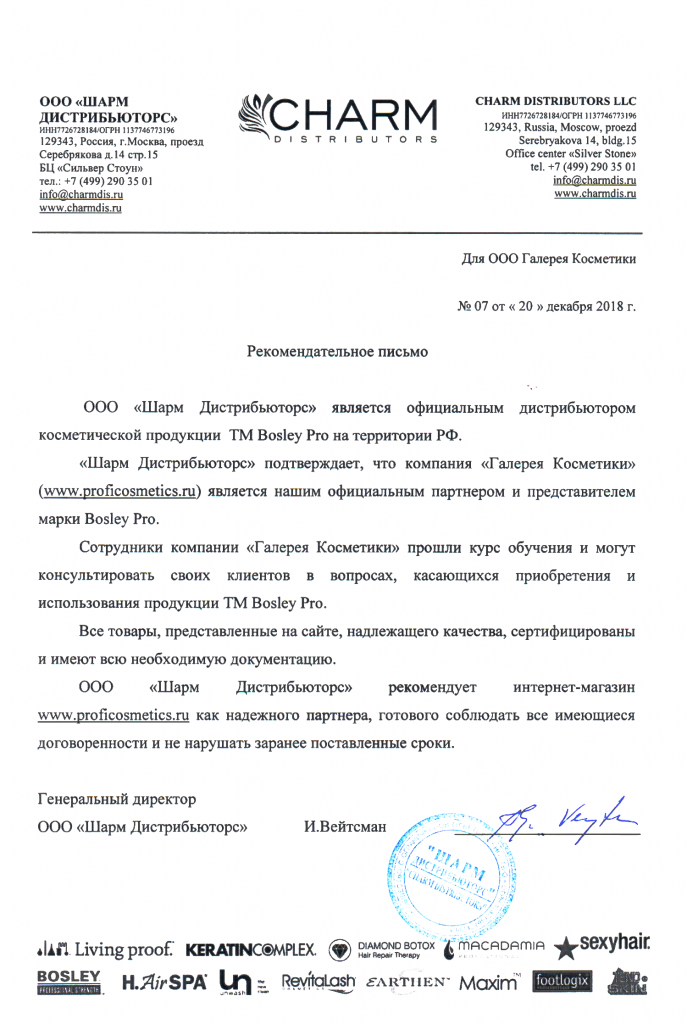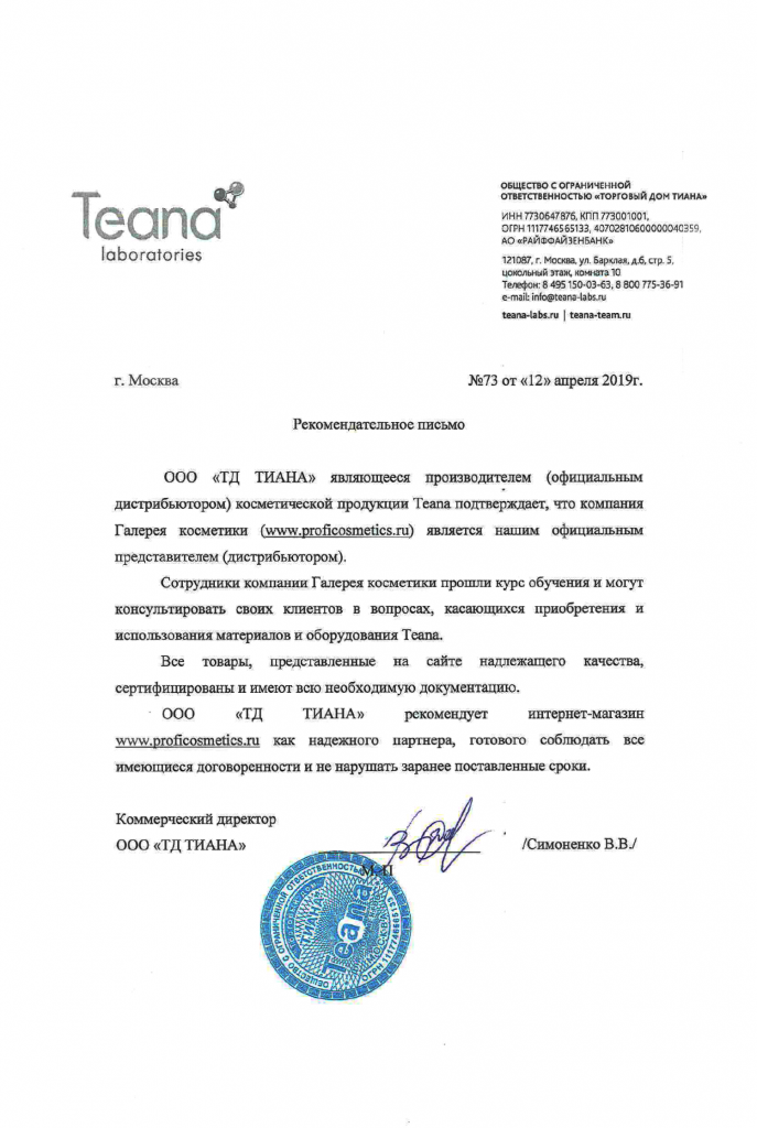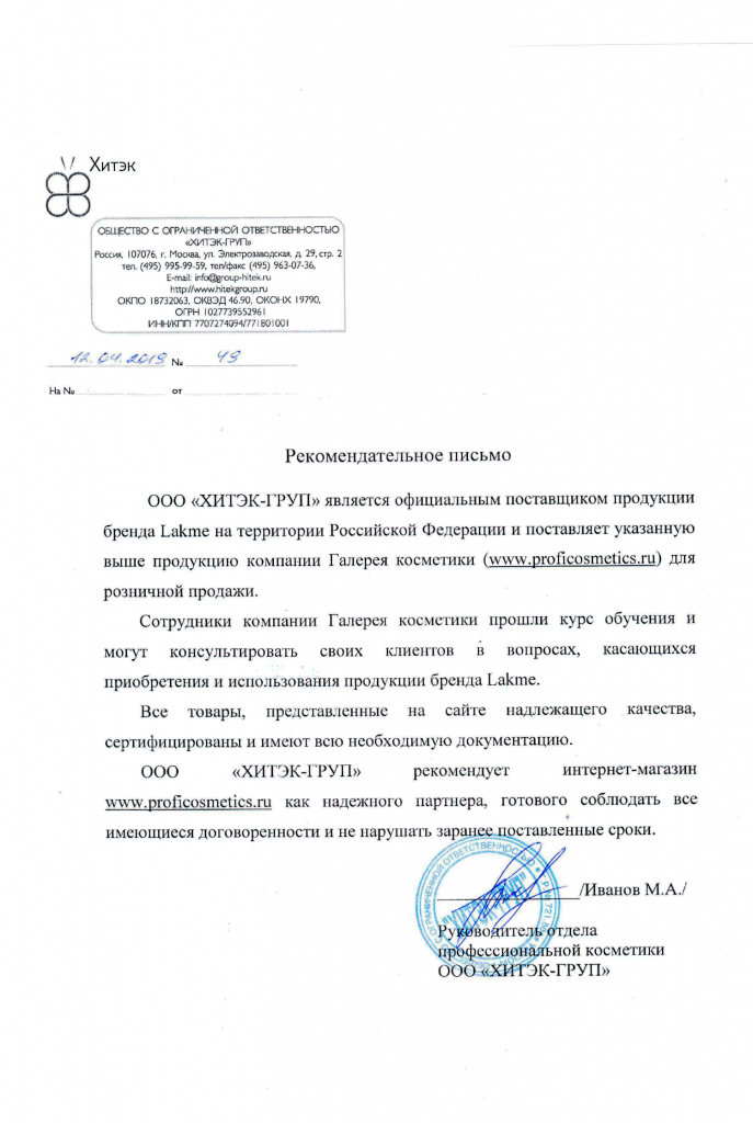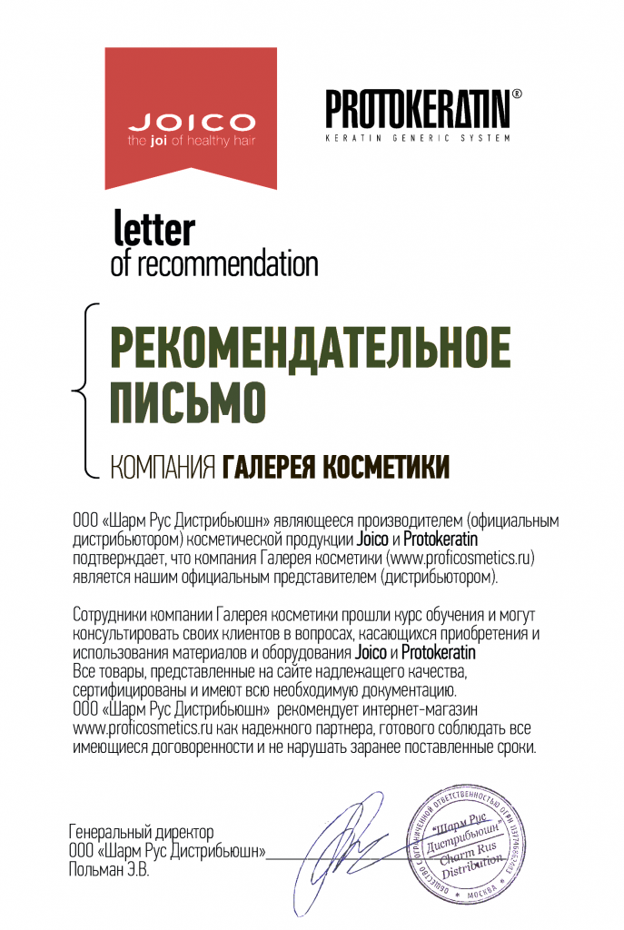 Вы можете ознакомиться с представленными нами официальными партнерскими письмами от ведущих торговых марок бьюти-индустрии, которые рекомендуют «Галерея косметики» как надежного партнера.