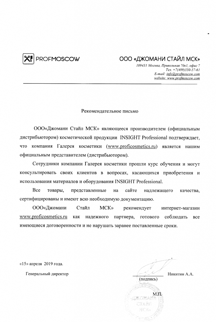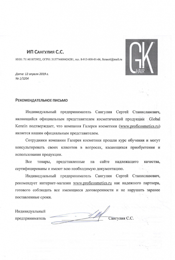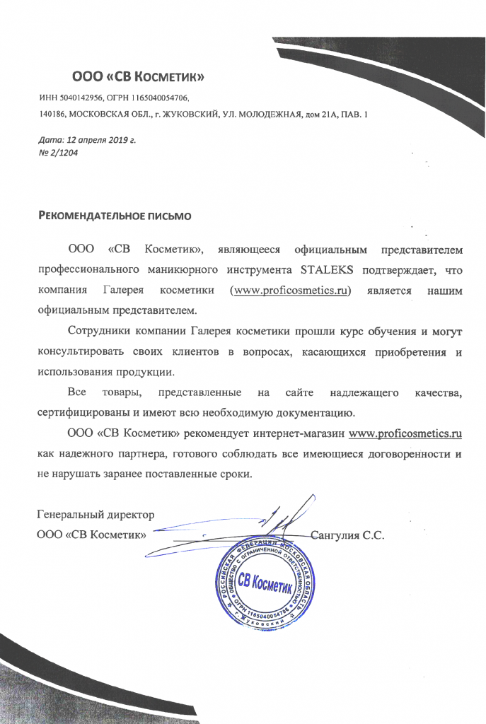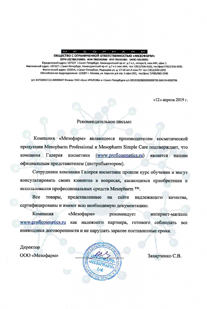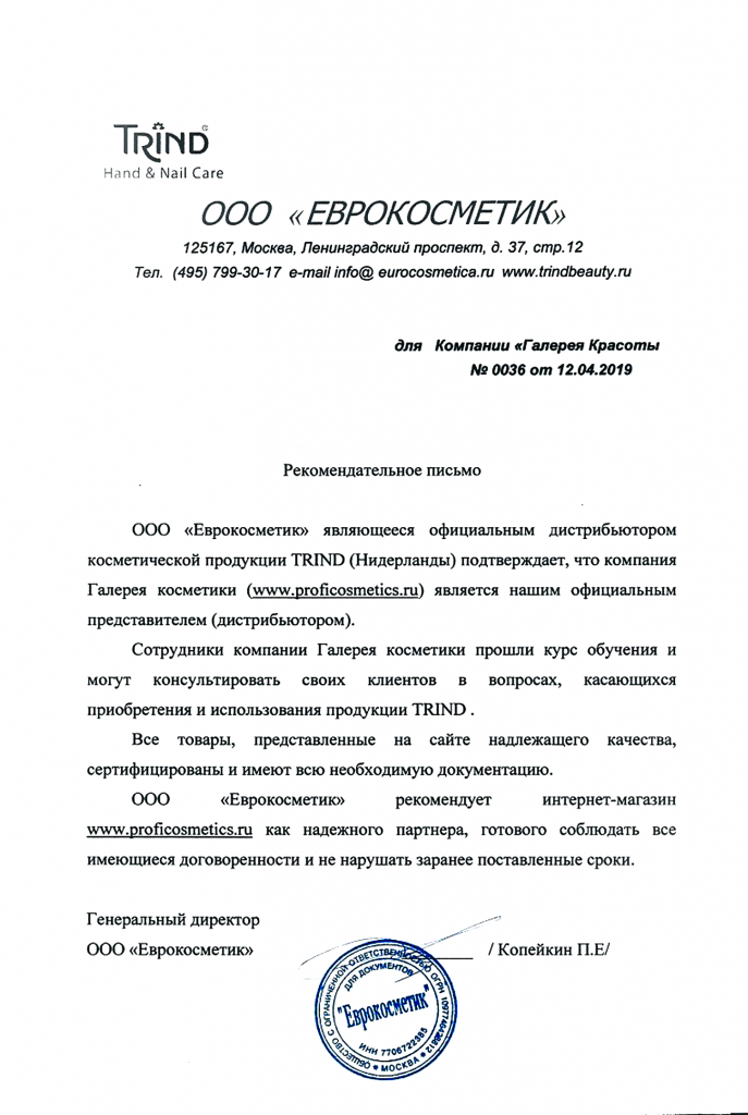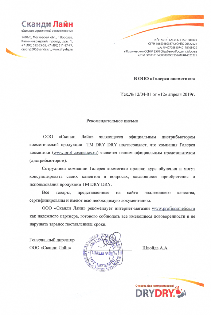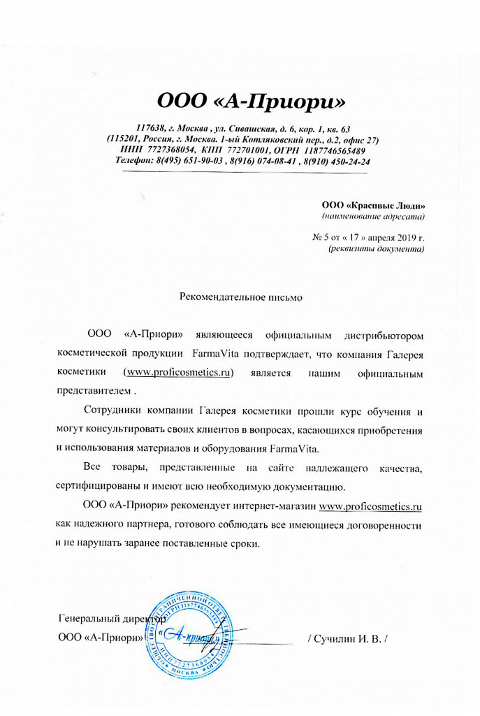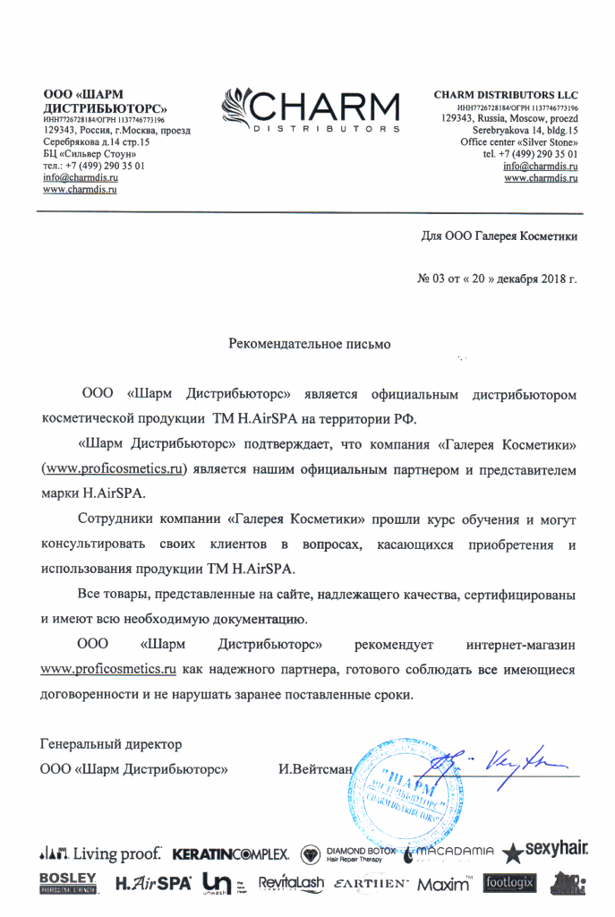 Вы можете ознакомиться с представленными нами официальными партнерскими письмами от ведущих торговых марок бьюти-индустрии, которые рекомендуют «Галерея косметики» как надежного партнера.